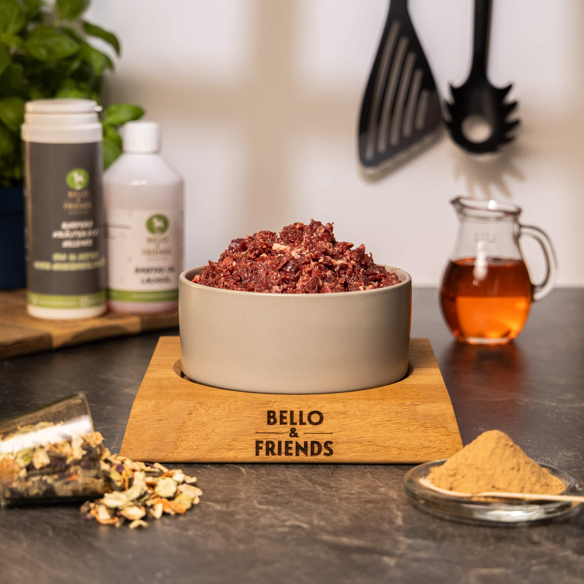 Bitte beachte, dass dieses Produkt allein keine vollwertige und ausgewogenen Mahlzeit für Deinen Hund darstellt, sondern nur ein Einzelfuttermittel ist. Im Rahmen eines BARF-Plan müssen noch pflanzlichen Anteile, Öle und Zusätze beigefügt werden. Falls Du dazu Fragen hast, sprich uns an, oder vertrau auf die Qualität unserer BARF Complete Menus, wo wir für Dich die optimale Komposition bereits zusammengestellt haben.