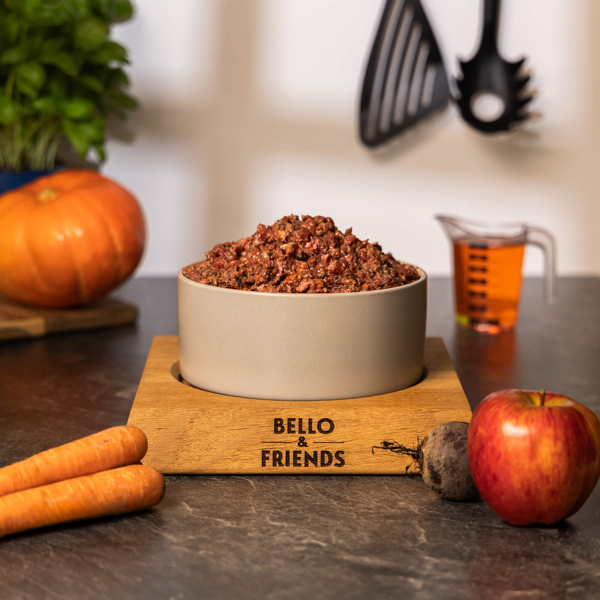 Dieses Komplettmenü besteht aus 63 g% Hühnerfleisch, inklusive Muskelfleisch, Organen und Fett, welches eine hervorragende Quelle für hochwertiges Protein darstellt. Der grüne Rinderpansen unterstützt die Verdauung und sorgt für eine natürliche Zufuhr von Probiotika. Ergänzt wird die Mahlzeit durch Karotten, Rote Beete, Kürbis und Äpfel, die nicht nur für ihren Geschmack, sondern auch für ihre Vitamine und Mineralien geschätzt werden.