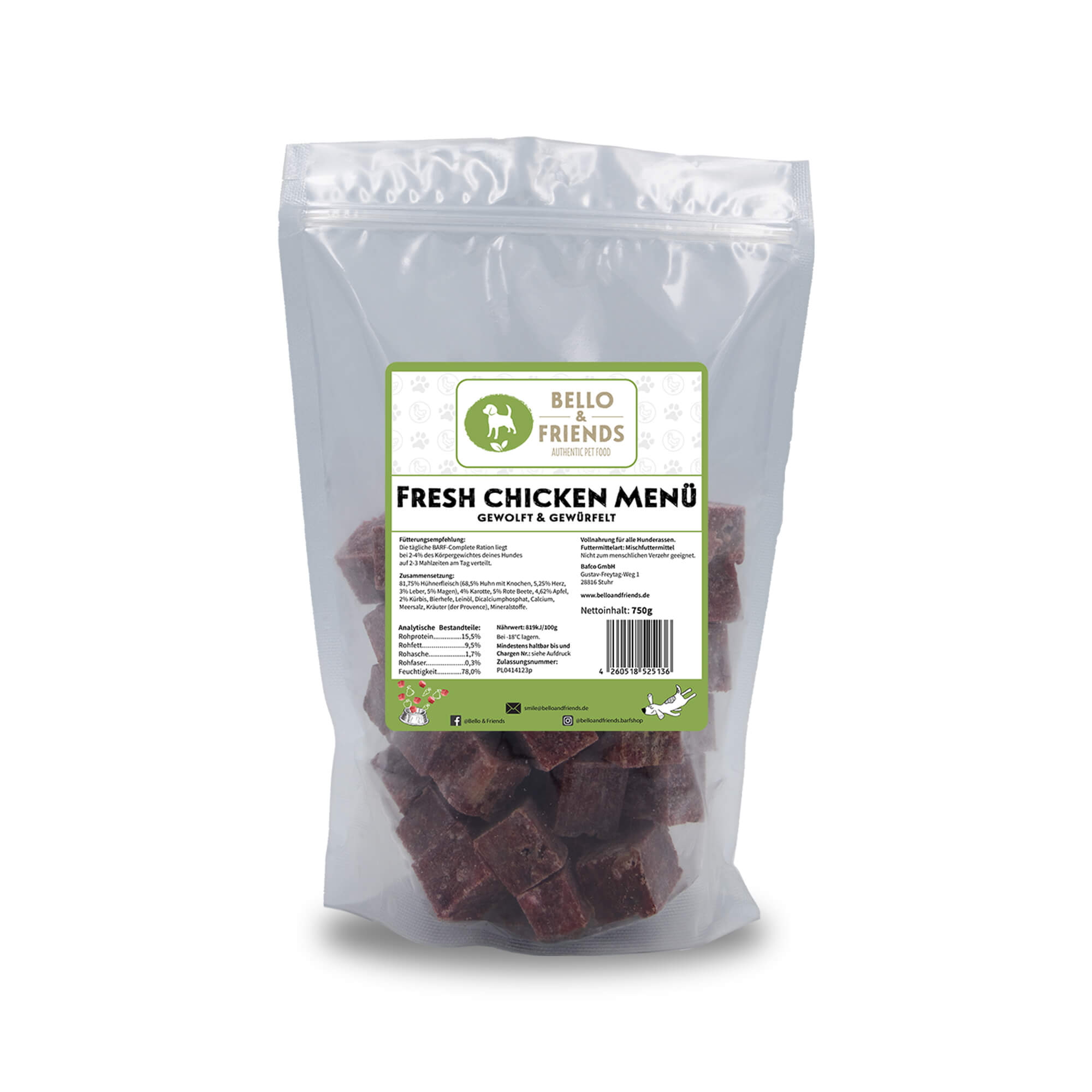Produktinformationen "Barf Menü Huhn Würfel / 750g"