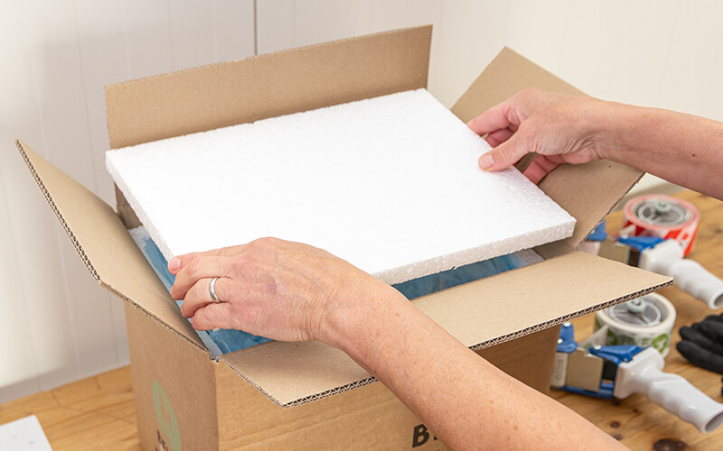 Wir packen eure Bestellung sorgfältig ein und achten dabei auf ein vollständiges Ausfüllen des Kartons. Dies verbessert die Wärmeisolation auf dem Versandweg.