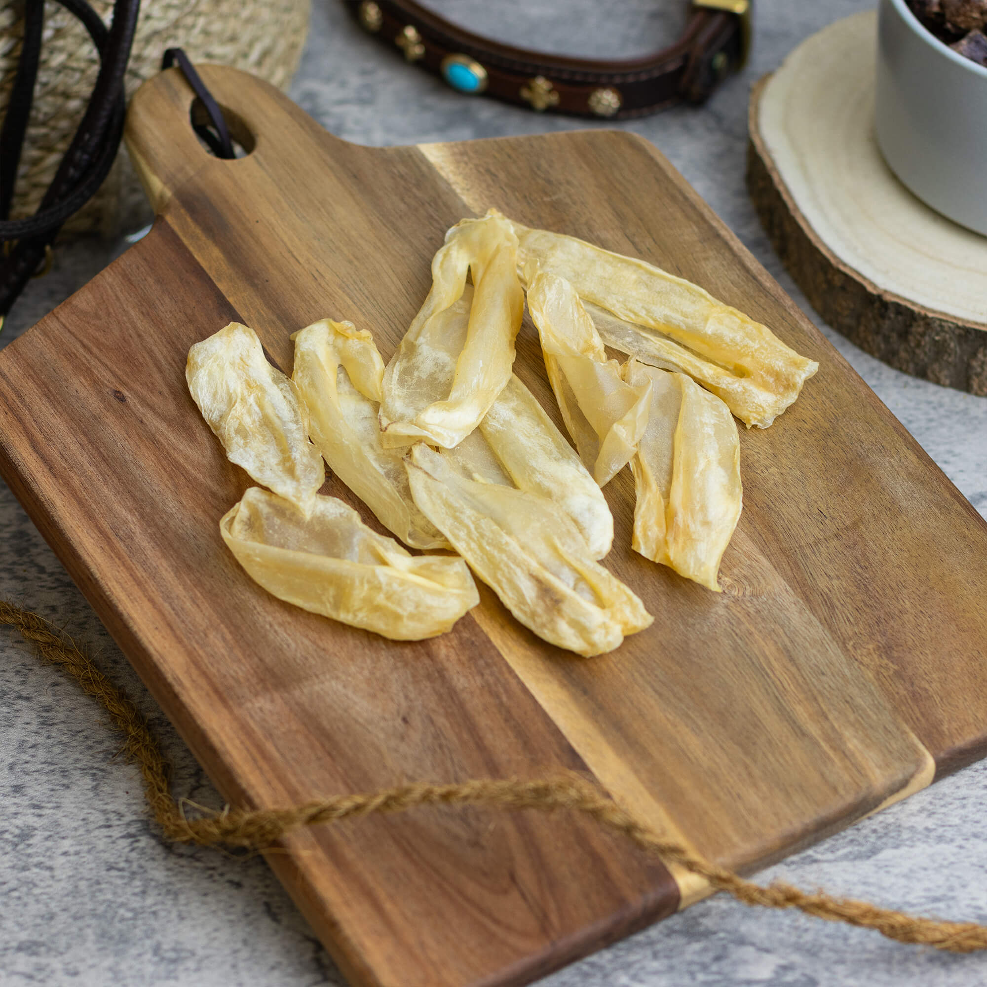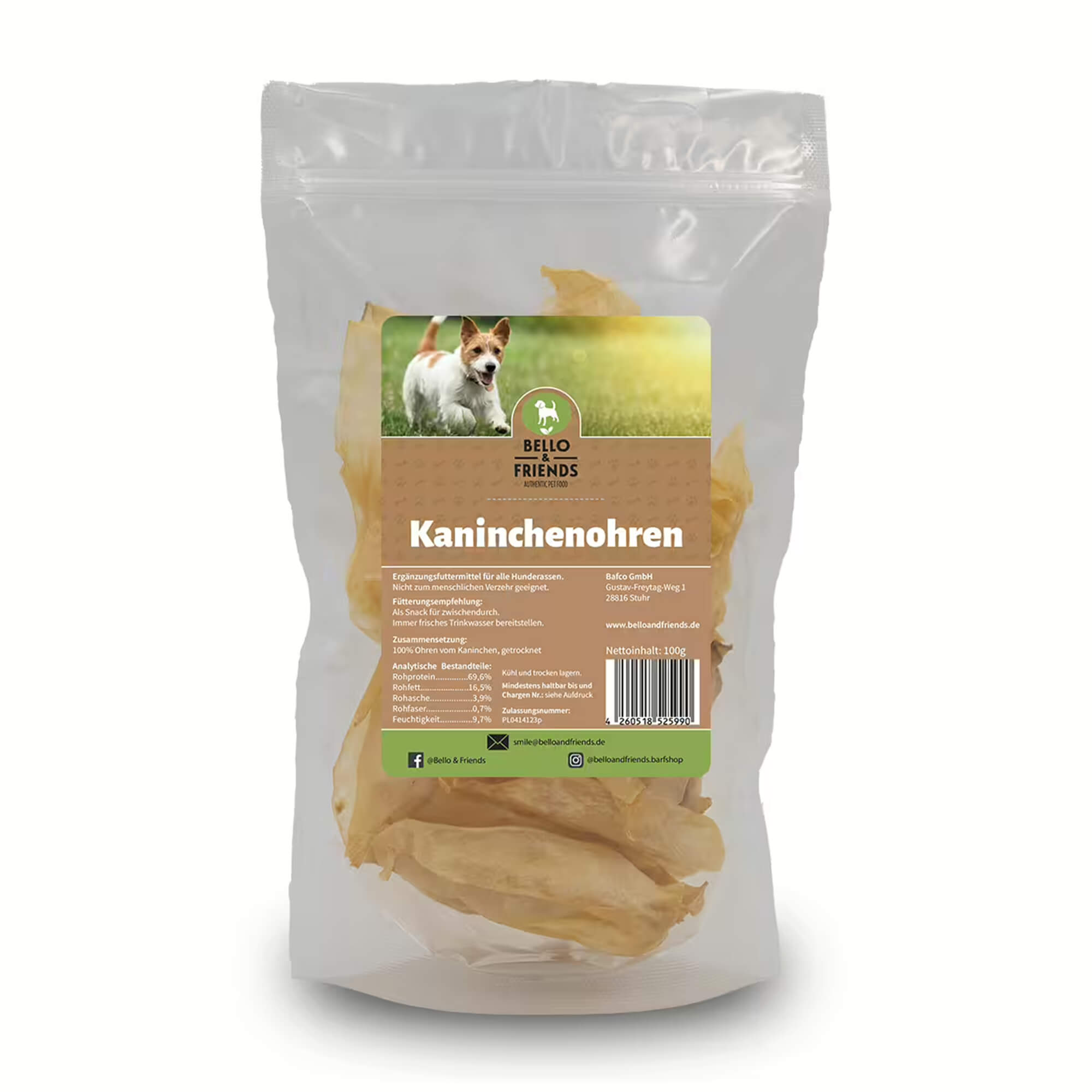 Getrocknete Kninchenohren ohne Fell für Hunde sind ein tolles Leckerchen neben den Mahlzeiten. Bei allen Hunden überaus beliebt ist dieses Knabberohr eine artgerechte Alternative zu den oft stark behandelten Kaustangen aus dem Supermarkt.