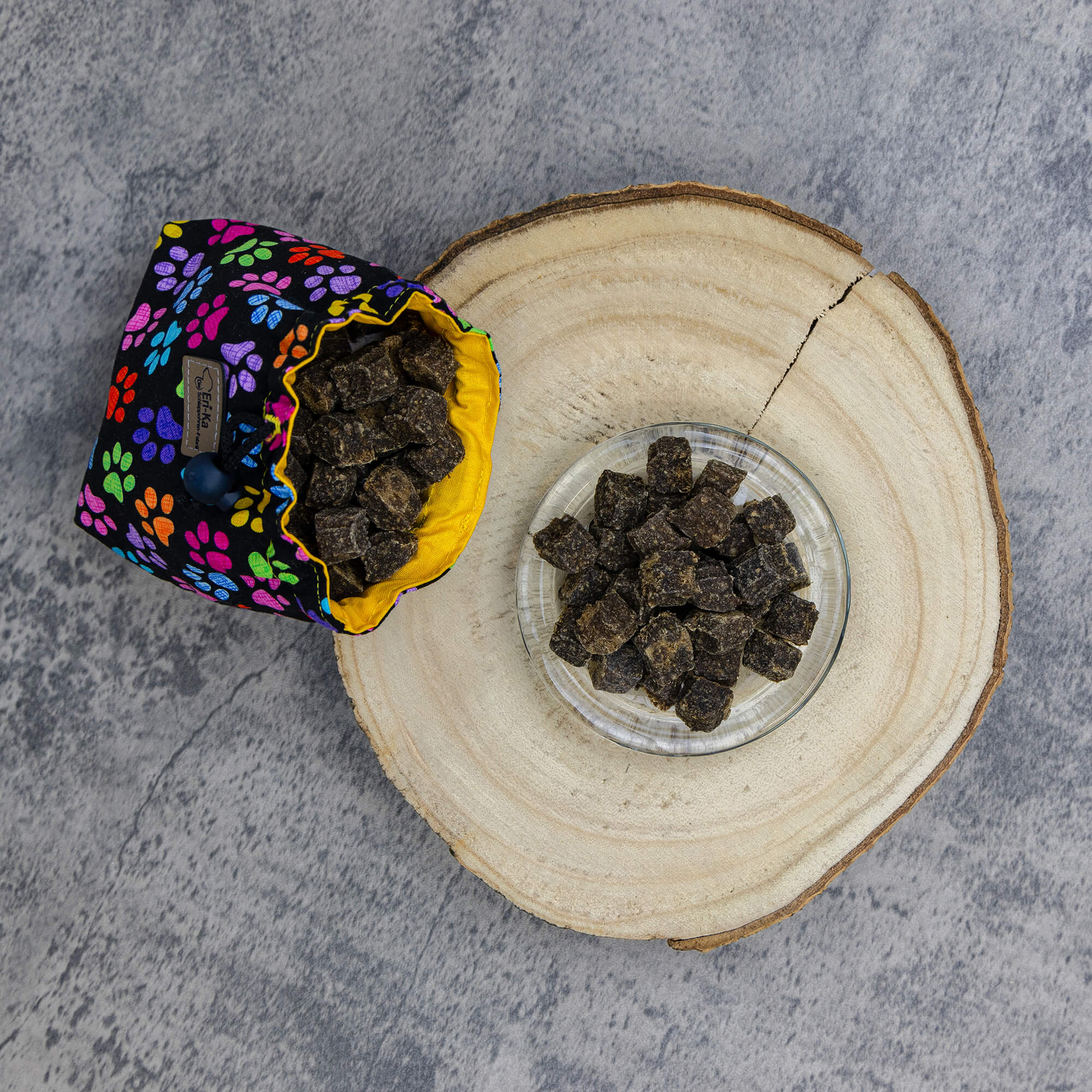 Aus Qualitätshirschfleisch in Würfelform geschnitten und schonend getrocknet ist dieser Snack unverzichtbar bei Gassirunden oder einfach nur auf der heimischen Couch. So wie wir Menschen naschen auch unsere liebsten Vierbeiner gern!