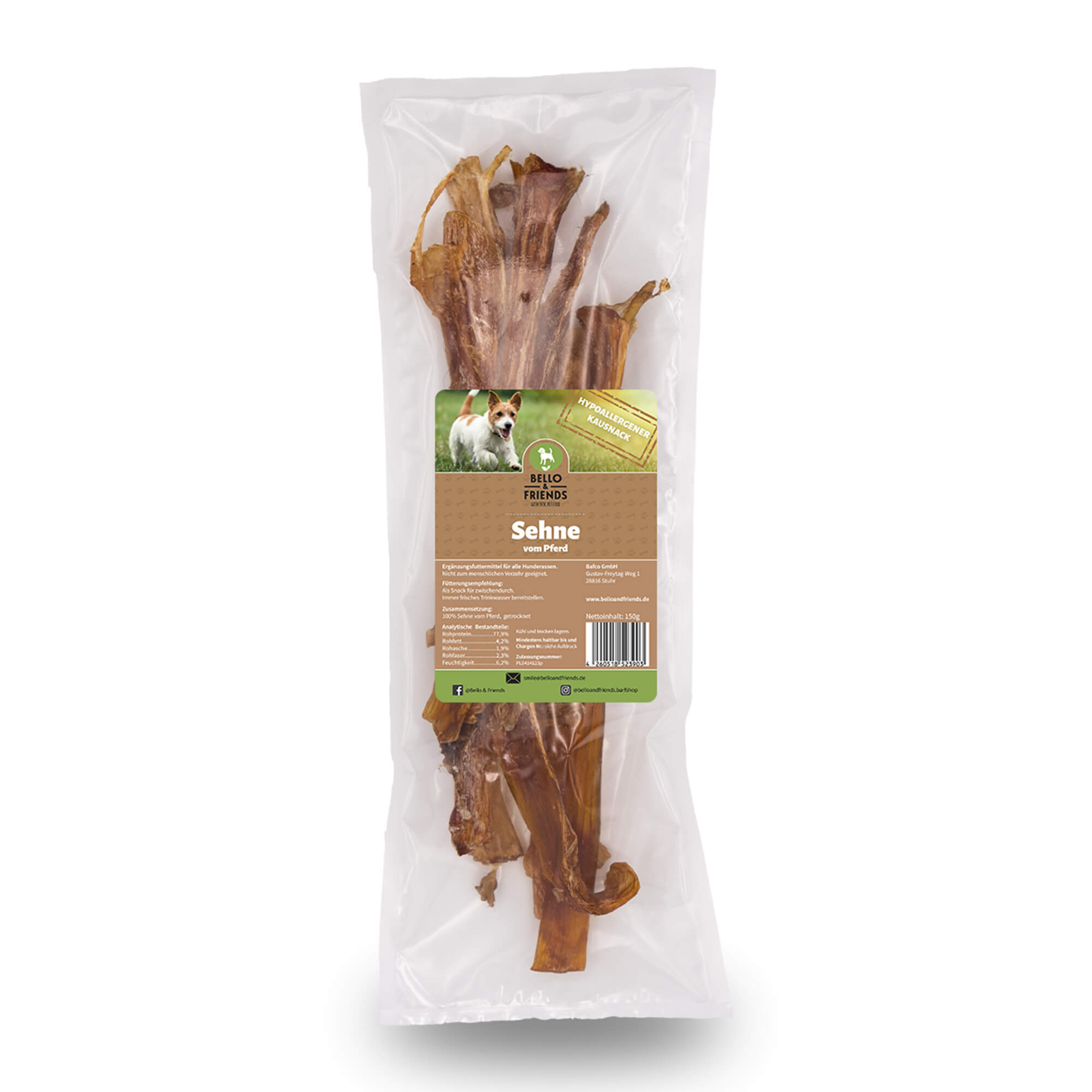 Getrocknete Pferdesehnen für Hunde sind ein hervorragender Gaumenschmaus für Hunde, die unter Allergien leiden. Pferdefleisch gilt als hypoallergern und sehr gut verträglich.