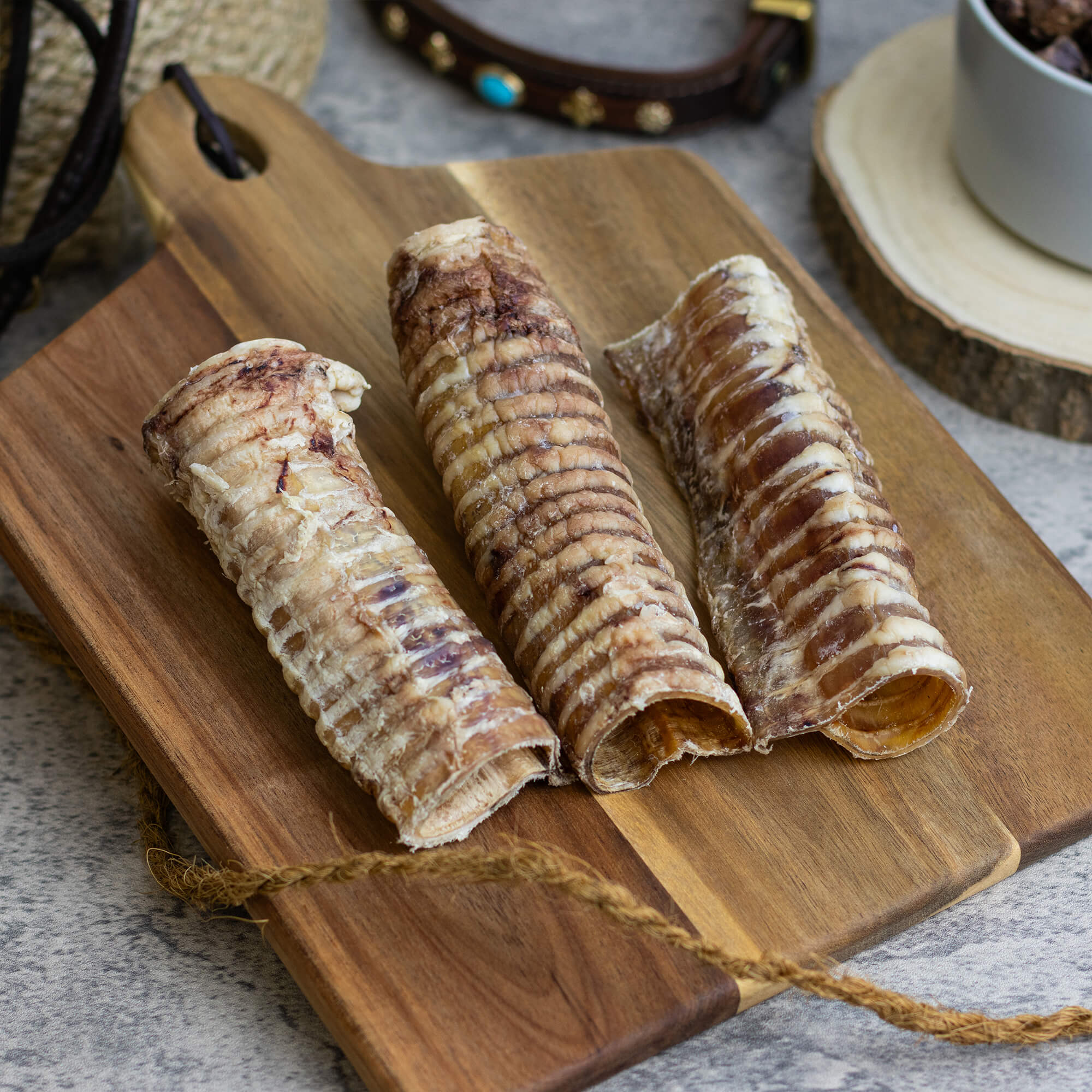 Die getrockneten Rinderstross-Stücke bestehen aus hartem Knorpel, Fleisch und Bindegewebe. Sie sind nicht nur lecker, sondern auch äußerst gesund. Sie enthalten wichtige Glykosaminoglykane, die zur Unterstützung des Bindegewebes und des Gelenkapparates deines Hundes beitragen. Diese natürlichen Verbindungen sind essenziell für die Bildung von Gelenkschmiere, die die Gelenke schmiert und schützt, was insbesondere für ältere Hunde oder Hunde mit Gelenkproblemen von Vorteil ist.