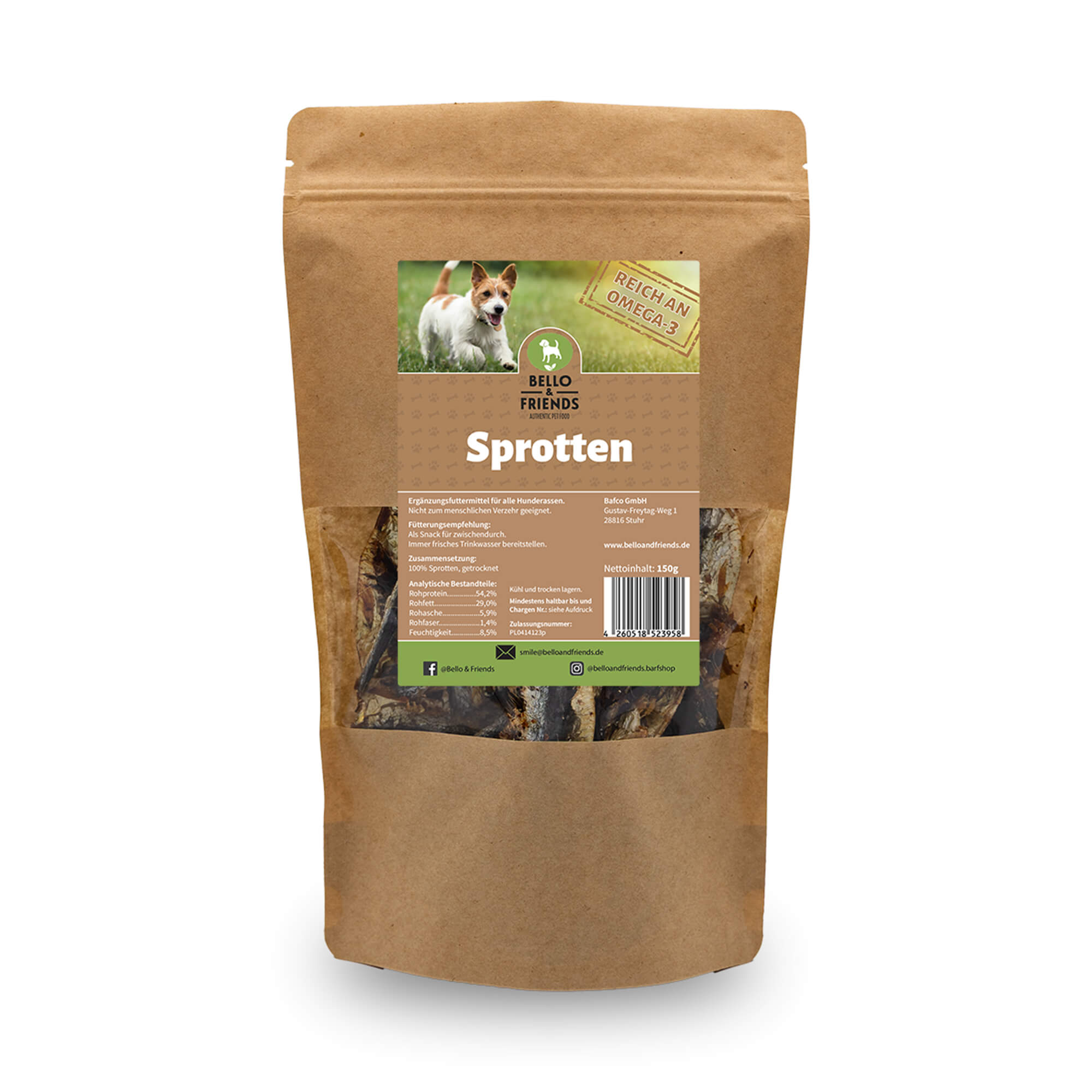Durch seine snackbare Größe eignen getrocknete Sprotten sich sehr gut als Belohnung bei der Hundeausbildung oder beim Agility.
