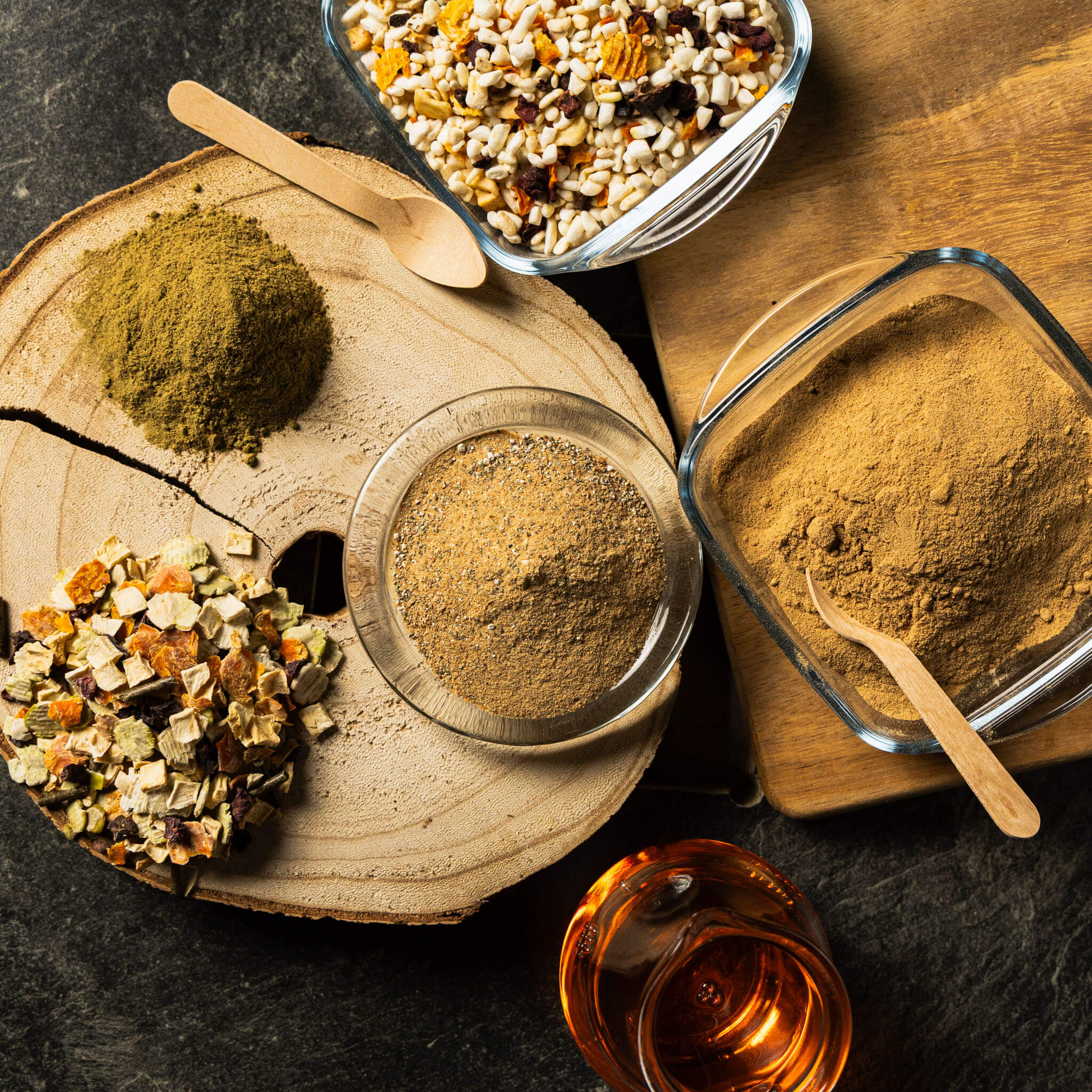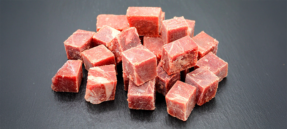 Entdeckt unsere beliebtesten Menüs, 100% Frostwürfel, gesunde Zusätze und Snacks für Hunde!