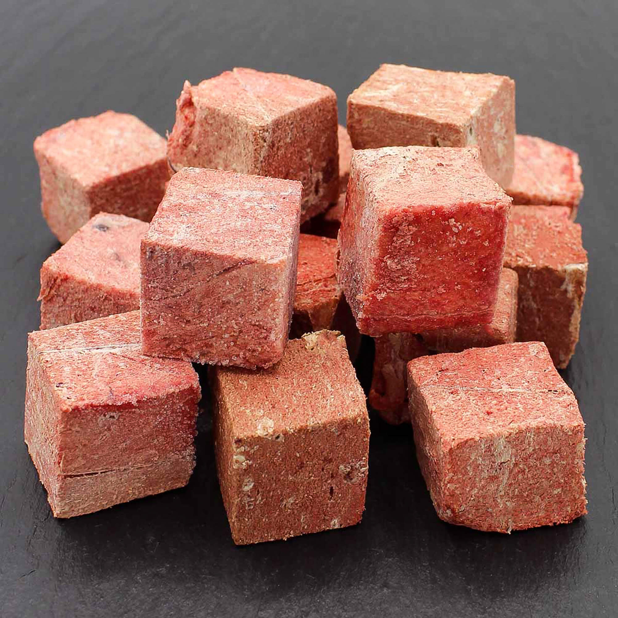 Dank der praktischen Würfelform lässt sich dieses nahrhafte Fleisch mühelos portionieren, was die Zubereitung von individuellen Barf-Menüs vereinfacht. Jeder Würfel verspricht nicht nur hervorragende Qualität, sondern auch ein intensives Kauerlebnis – ein sechsseitiges Geschmackserlebnis, das die Gesundheit und das Wohlbefinden deines Hundes unterstützt.