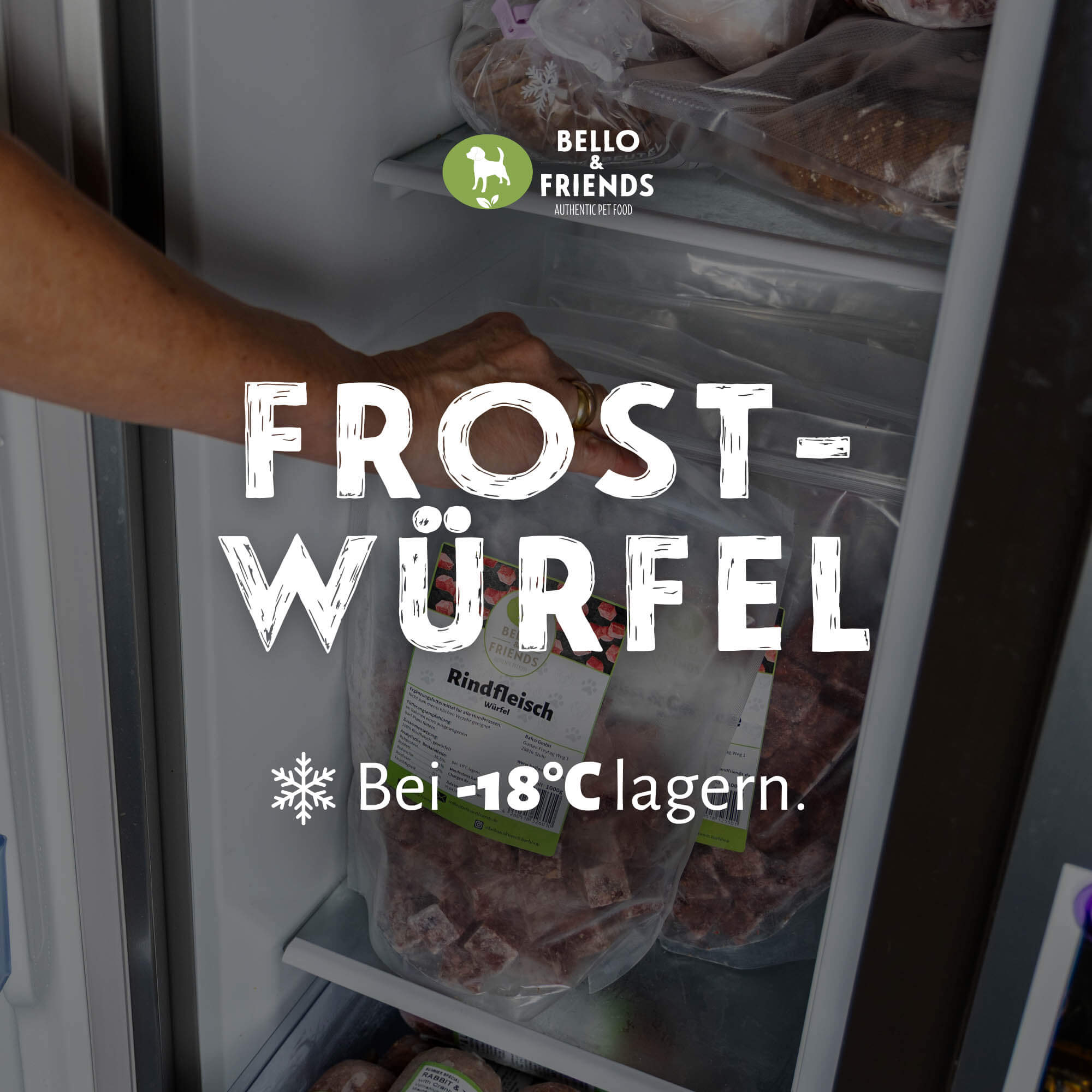 Diese nährstoffreichen Würfel sind ideal für ein individuell angepasstes Menü, das auf die Gesundheit und das Wohlbefinden deines Hundes abzielt. Die praktische Würfelform erleichtert das Portionieren und gewährleistet, dass dein Hund stets die richtige Menge an hochwertigen Proteinen erhält.