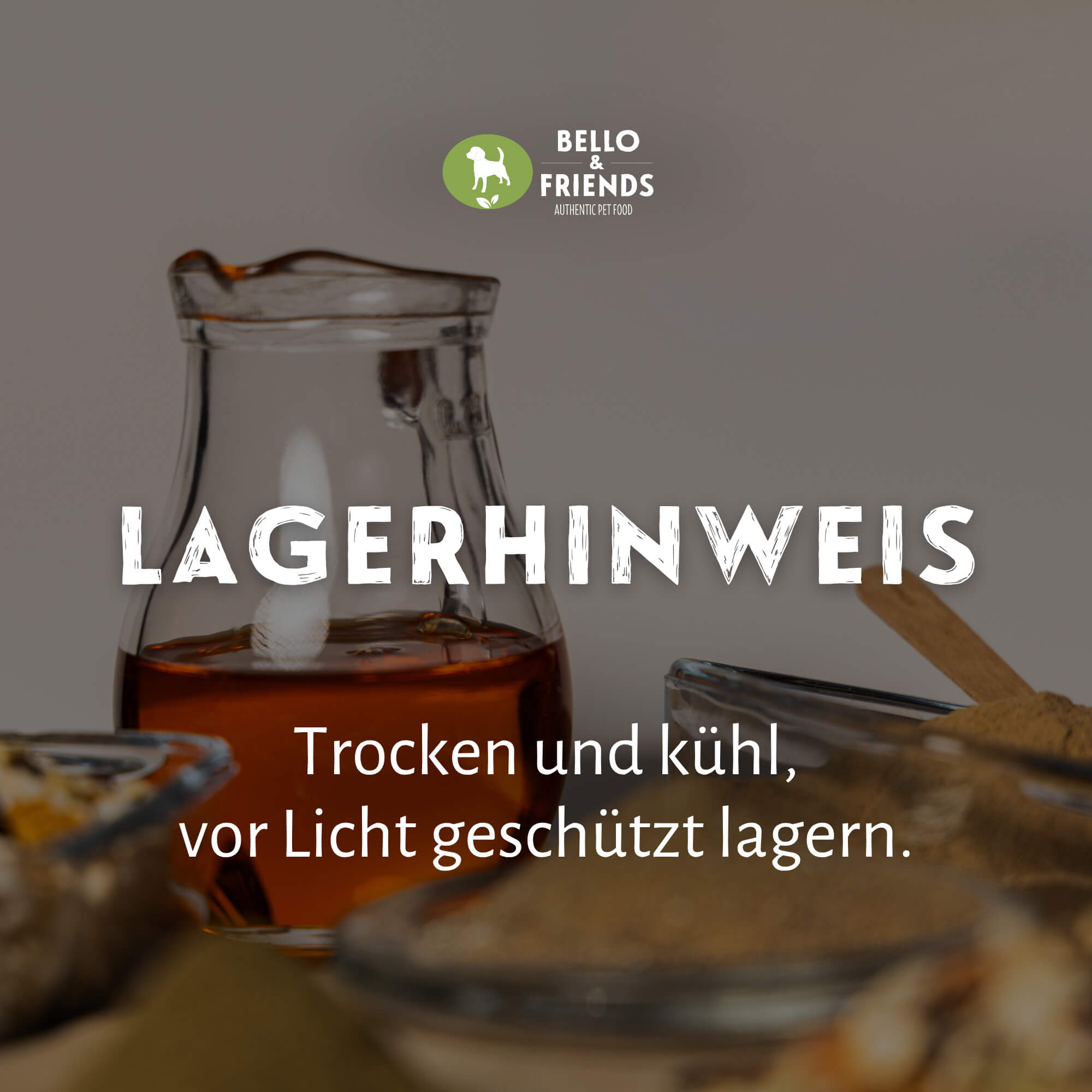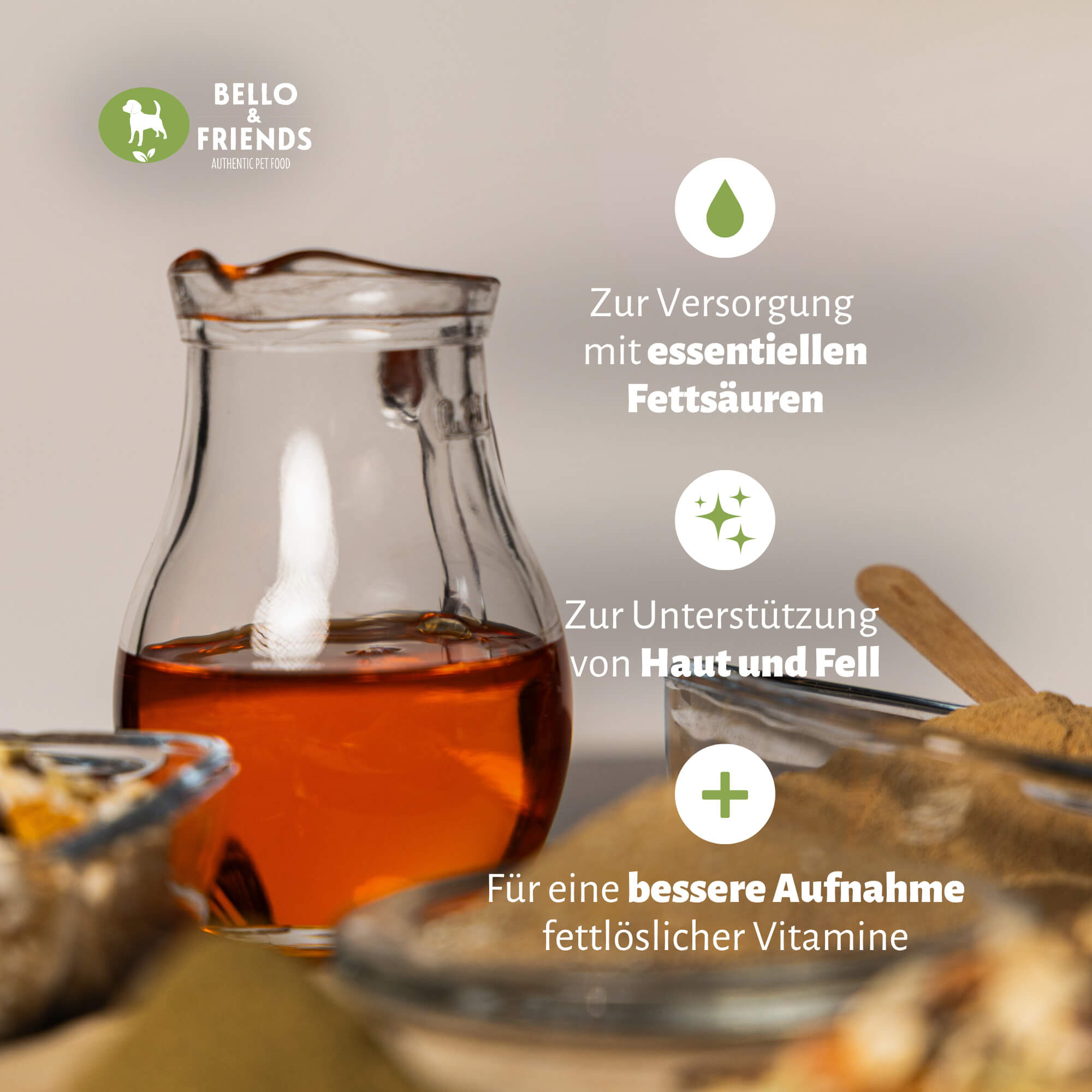 Das Öl wird einfach unter das tägliche Futter gemischt und sorgt für eine gute Akzeptanz.