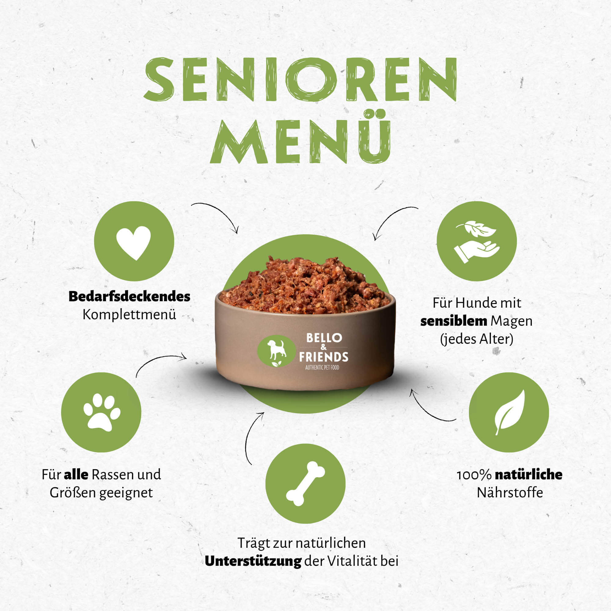 Fütterungsempfehlung: Dein Liebling freut sich über 2-4% seines Körpergewichtes von diesem Menü als Tagesration. Wir empfehlen 2-3 Portionen am Tag und immer frisch bereitgestelltes Wasser.