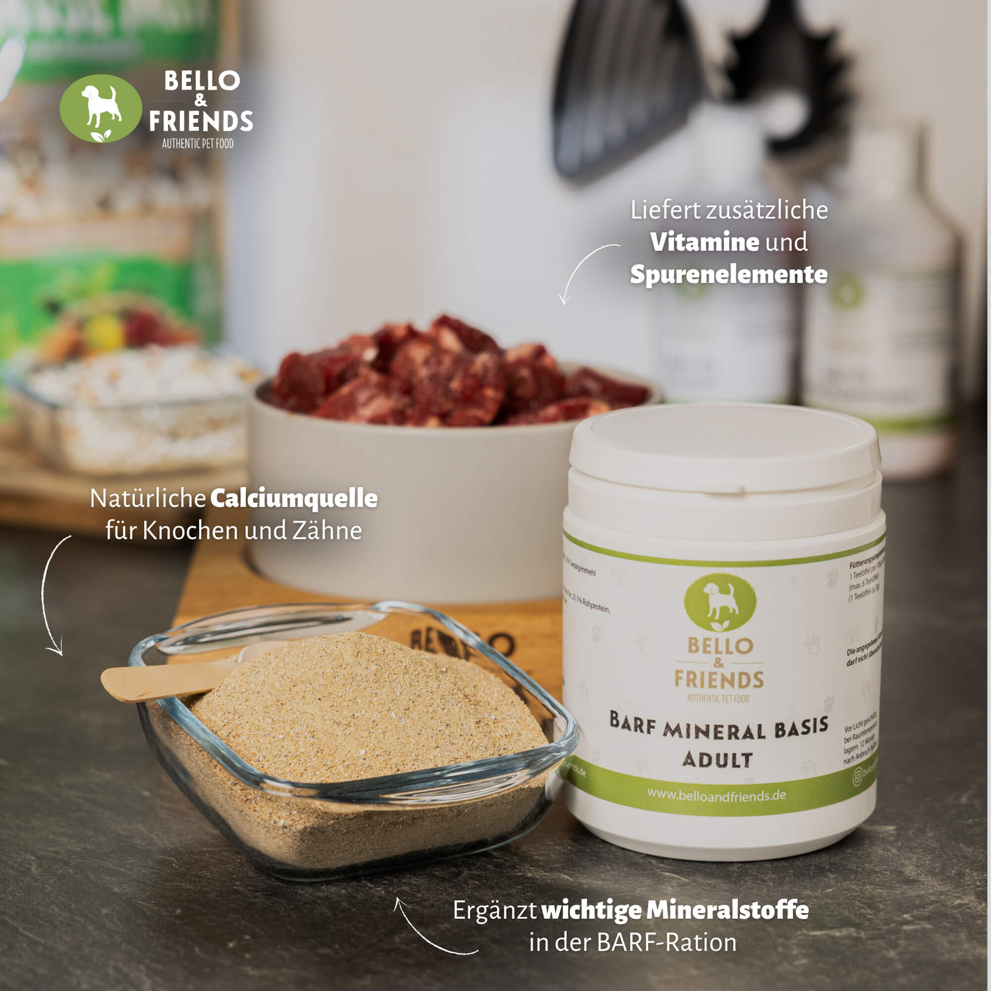 Eine ausgewogene Mineralstoffversorgung ist ein zentraler Bestandteil der BARF-Ernährung erwachsener Hunde. Diese Mineral-Basis-Mischung wurde speziell für adulte Hunde entwickelt und unterstützt eine bedarfsgerechte Ergänzung von selbst zusammengestellten Rationen.