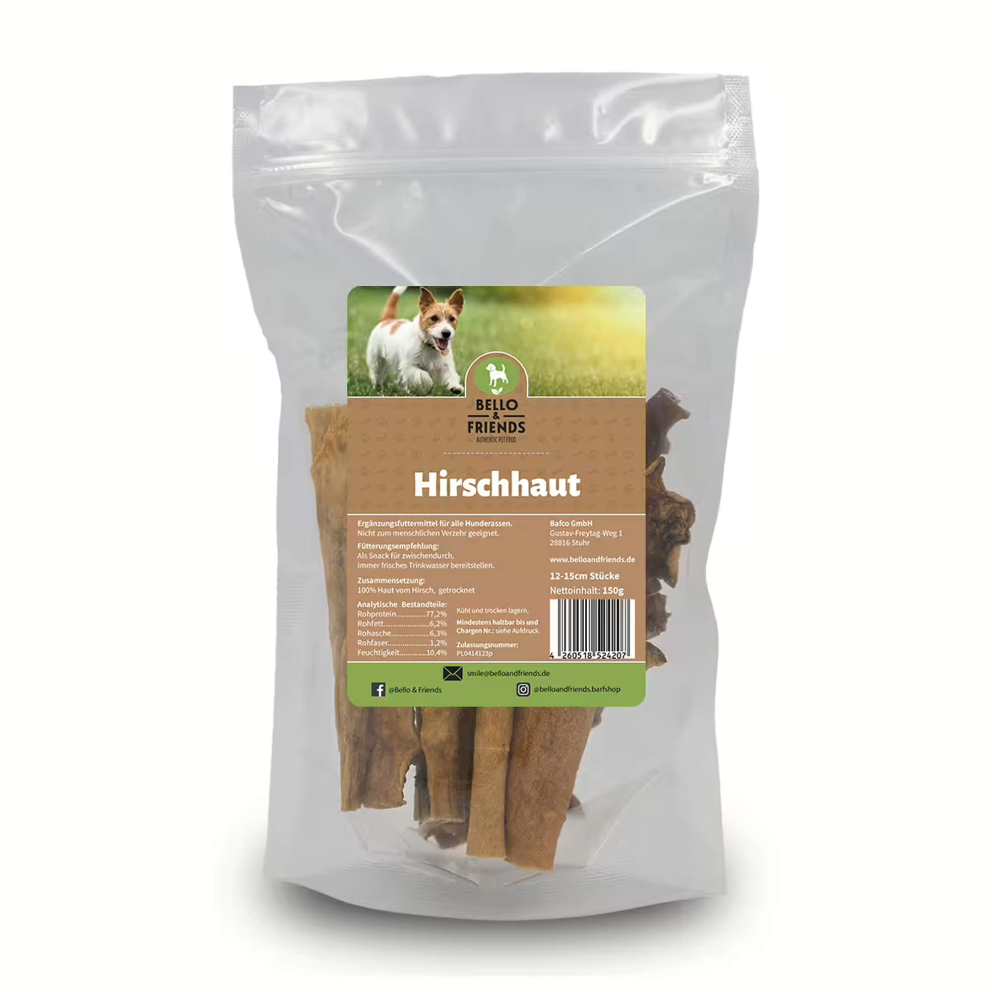 Überzeuge dich selbst von der Qualität unserer getrockneten Hirschhaut und gönne deinem Hund einen natürlichen und gesunden Snack. Wir wünschen dir und deinem Vierbeiner viel Freude beim Ausprobieren und Genießen dieser köstlichen Leckerbissen!