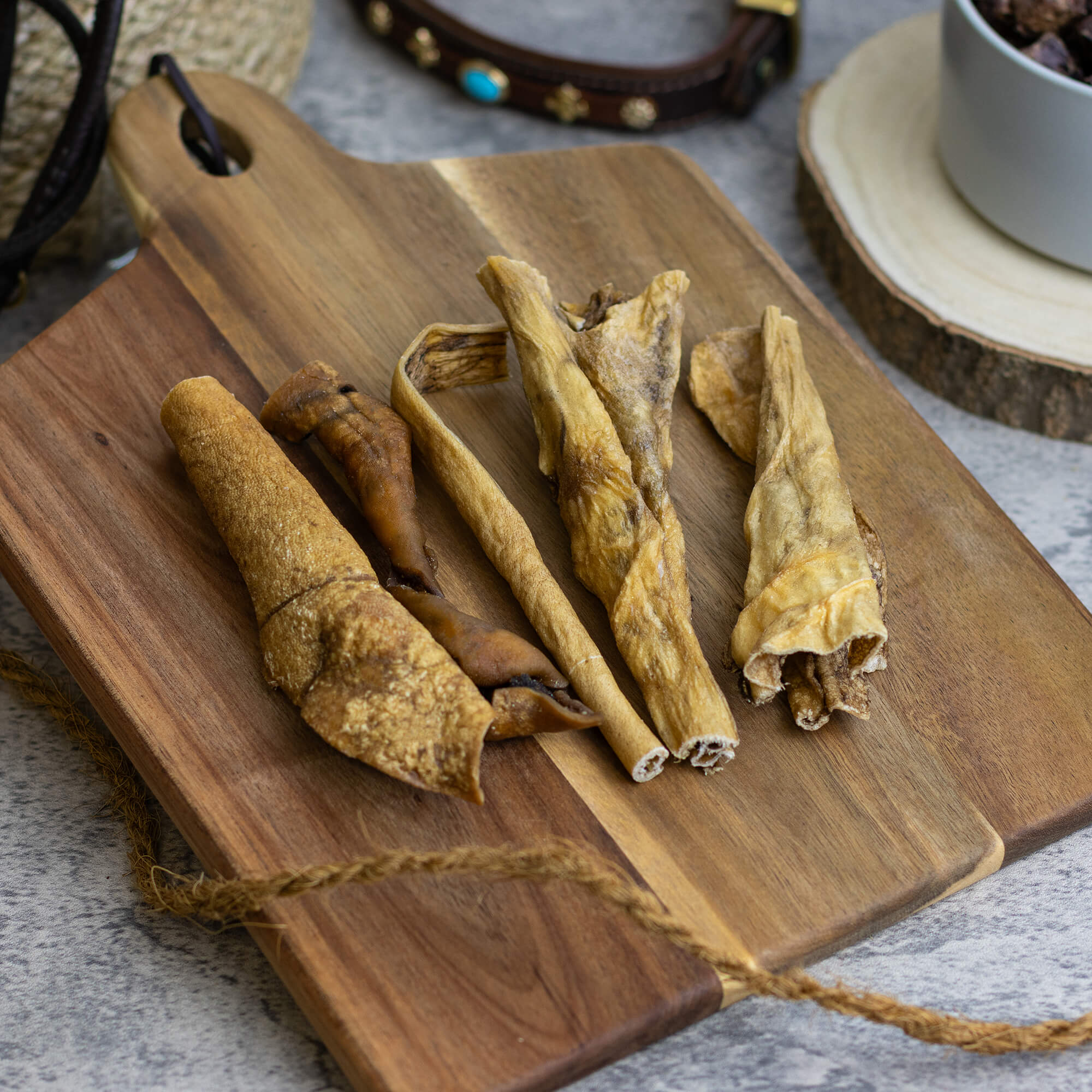 Unsere getrocknete Hirschhaut ist reich an Proteinen und daher ideal für Hunde mit Getreideallergien oder Unverträglichkeiten geeignet. Dieser hochwertige Snack bietet deinem Hund eine nahrhafte und schmackhafte Belohnung, die sich hervorragend als Ergänzung zu einer ausgewogenen Ernährung eignet.