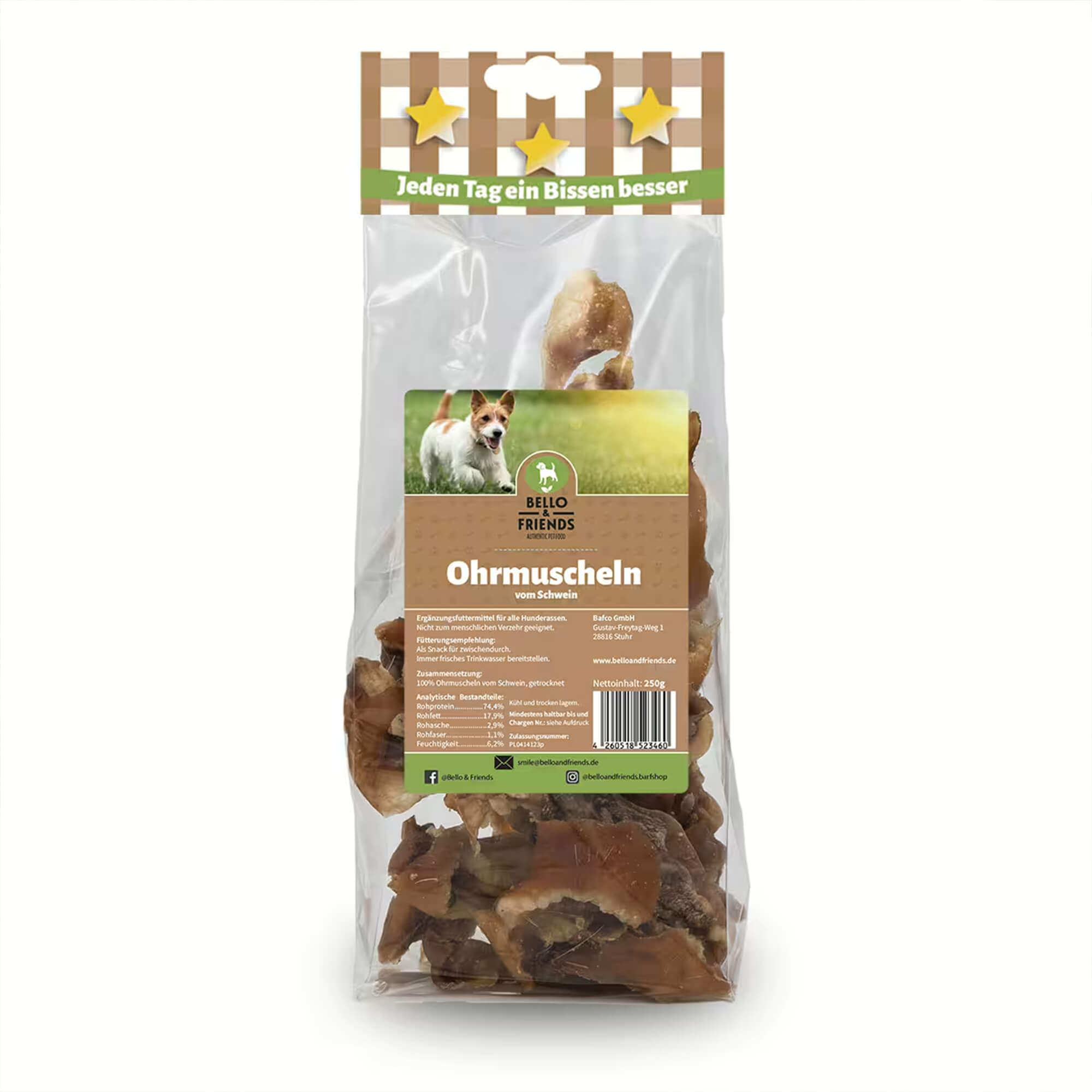 Die getrockneten Schweineohrmuscheln von Bello and Friends sind ein wahrer Genuss für deinen Vierbeiner. Diese leckeren Kausnacks eignen sich hervorragend für Hunde aller Größen und sorgen durch ihre feste, knackige Beschaffenheit für langanhaltenden Kauspaß. Dein Hund wird es lieben, sich mit diesen köstlichen Schweineohrmuscheln zu beschäftigen, die ihm sowohl Freude als auch zahlreiche gesundheitliche Vorteile bieten.