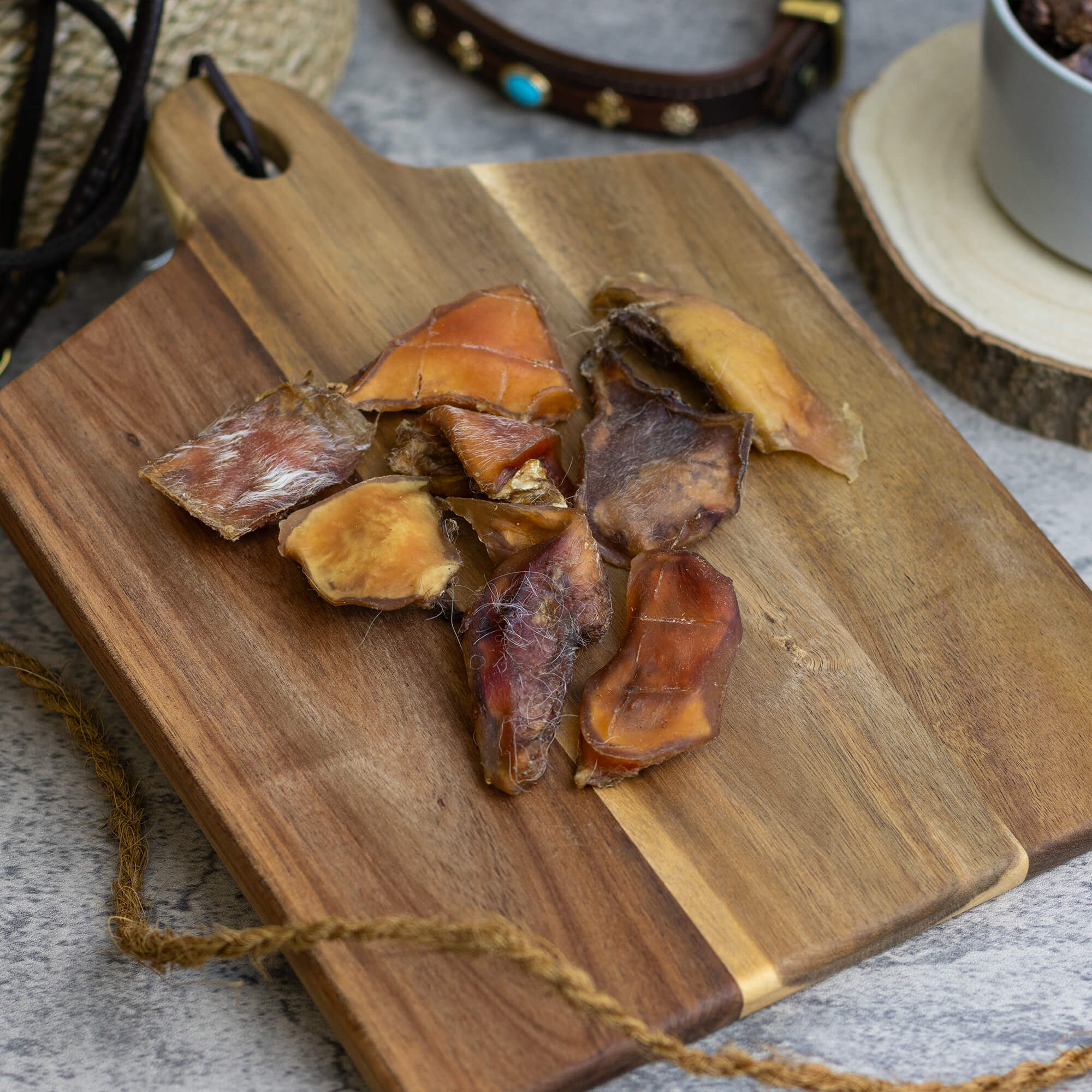 Besonders geschätzt werden die getrockneten Streifen der Rinderhaut wegen ihrer guten Verträglichkeit und der Beschäftigung, die sie bieten. Der Hund muss sich anstrengen und die Haut weich kauen, bis er ein Stück abbekommt.