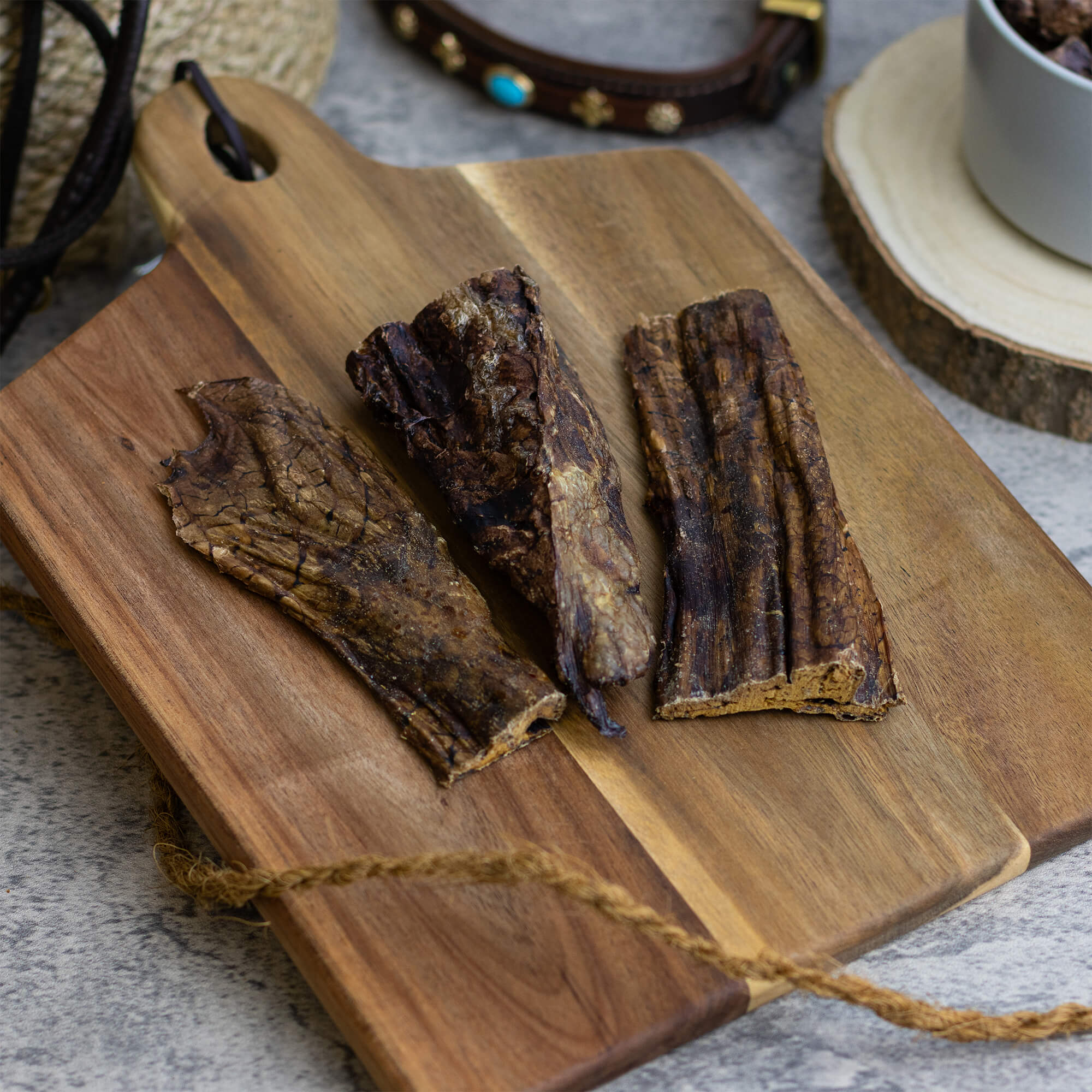 Alle Trockenartikel werden aus schlachtfrischen Rohstoffen mittels schonender Trocknung hergestellt. Und das war’s auch schon!